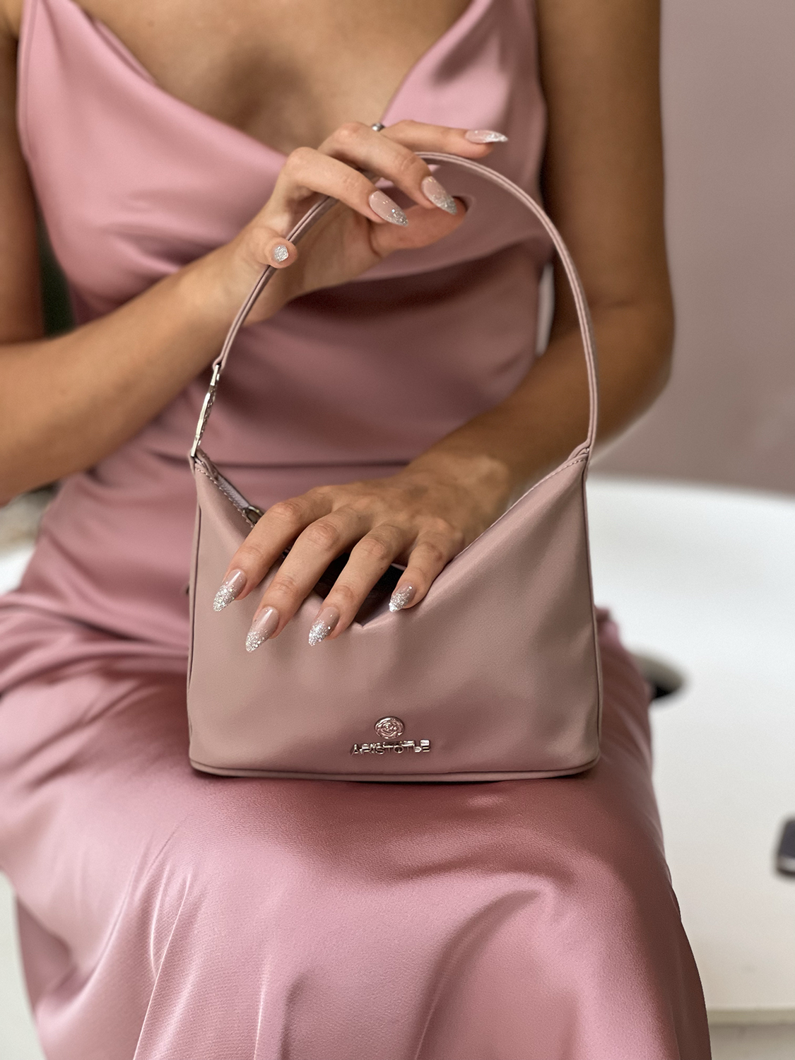 Aristotle bag Model Name : WOC Junior Color : Sakura pink Description 100% Genuine leather Width is 10.5 CM Height is 10.5 CM Depth is 2.5 CM Strap long 115 CM (non- adjustable)**สินค้า sale ทุกชิ้น เป็นสินค้าที่มีตำหนิ แต่ไม่มีผลกับการใช้งาน